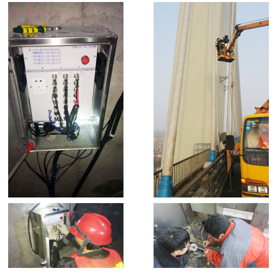 淮安五河口大桥(现名淮安大桥)是宿淮盐高速公路上的一座特大型桥梁,位于宿淮高速公路、宁淮高速公路及淮安西环的共线段上。淮安大桥主桥为三跨一联预应力混凝土双塔双索面全漂浮体系斜拉桥。为了确保大桥的运行安全和做到提前预警,公司于2013年对全桥安装健康监测系统。 系统监测的物理量有:箱梁内部应变、温度、加速度、动位移、风速、支座位移以及GPS信息。 数据采集设备共有28组,共272个测点,分为箱梁内部的17组和桥面上的11组,桥面上的系统主要测试索力以及风速数据,其余测量均在箱梁内部完成。 各组采集设备通过以太网通讯,通过光纤将数据传输至远程监控室。二、现场照片