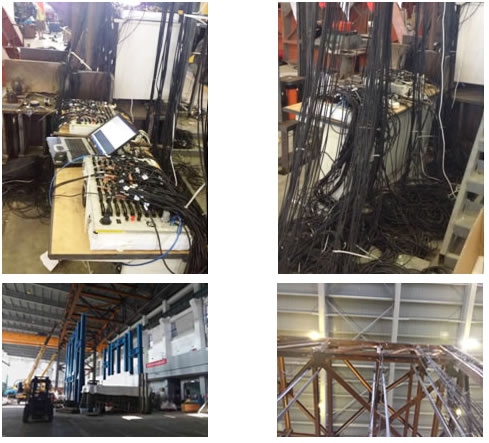 浙江大学使用20台TZT3826静态应变测试分析系统对国家电网±200千伏舟山多端柔直换流站工程大型阀门钢结构进行应变应力测试,测试其在一定荷载的加载状况下,钢结构各个节点的应力应变情况,整个实验包含了1200个测点。