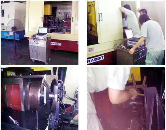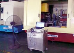 上海莱必泰数控机床股份有限公司为迎合国际市场需求,提高机床的加工精度,使用TZT5912测量整个设备的动刚度,并得到相关的伯德图及奈奎斯特图。二、设备组成TZT5912(8CH)TZT5912动态信号测试分析系统软件TZT1001L(6套)TZT力锤一把TZT电荷试调器一个三、实验过程在机床的每个核心部件的不同位置安装5个加速度传感器,用力锤在该部件的不同位置进行激励,并分别进行采数。数据采集完成后,进行频响分析,每个部件10组数据相互对比,最后取得其准确的频响函数。并经过软件处理显示伯德图和奈奎斯特图。四、现场照片