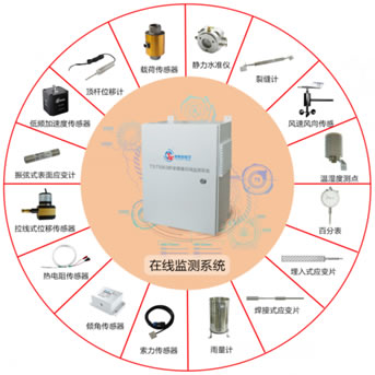 雨棚监测内容主要为结构变形、结构应变、动力及振动特性监测等,本公司经过多次实地考察以及丰富的监测经验选择了适合雨棚的监测传感器(如图2)。