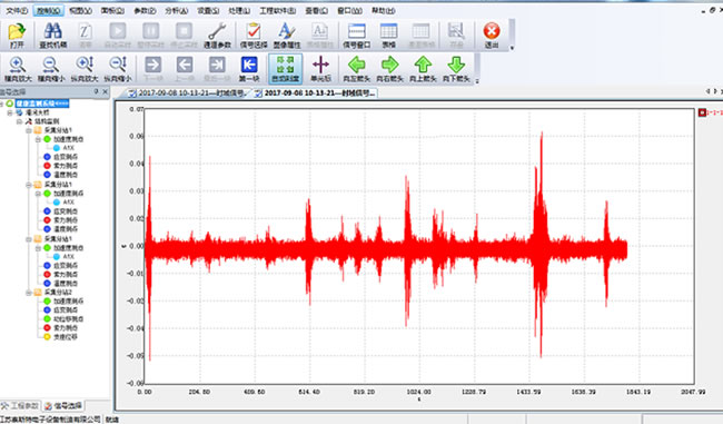 相较于其他一般的监测设备,我公司的TZT5963为通用型在线监测系统,利用计算机的存储空间记录设备的运行参数(包括振动、应力应变、温度、压力、风速等),对重要设备的营运状况24小时进行监控,设备一旦出现事故前兆或意外事件及时报警并尽可能多的采集事故信息,为了解事故现象和分析事故原因及造成的损伤提供可靠的数据,是我公司主推并技术十分成熟的监测设备之一,可以为雨棚的结构损伤提供可靠的数据,也能给相同结构的雨棚监测和养护提供宝贵经验,推进并确保健康监测的安稳发展。(附软件监测图3)